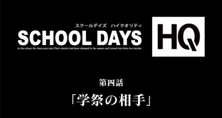 The game ranked as the best-selling visual novel in Japan for the time of its release, continuing to chart in the national top 50 for nearly five months afterward. School Days has received a spin-off of the original story called Summer Days, a parallel story called Cross Days and an another spin-off called Island Days, has been developed by Klonfor the Nintendo 3DS. School Days was remastered as School Days HQ on October 8, 2010 and localized in North America on June 27, 2012.